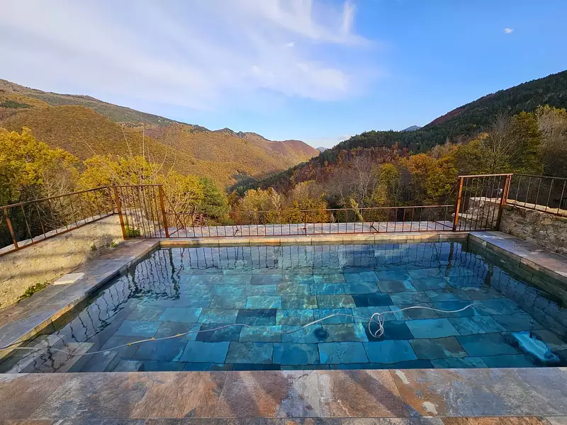 Découvrez des vues à couper le souffle et une tranquillité totale dans un hameau écologique situé dans un endroit paradisiaque. Idéale pour des projets touristiques, communautaires ou holistiques, cette magnifique propriété de 430 m² est répartie sur quatre bâtiments. Elle comprend une maison privée de deux chambres, des chambres à coucher avec quatre chambres doubles spacieuses dotées de salles de bains privatives, une cuisine d'été et un salon, une cuisine professionnelle entièrement équipée et une grande salle de réception/conférence/yoga avec un plafond cathédrale et une grande baie vitrée offrant une vue imprenable, ainsi qu'un coin repas pour le petit-déjeuner. L'espace extérieur est un paradis pour la détente et le divertissement. Les journées sont agréables au bord de la piscine, qui offre une vue imprenable sur les montagnes. Un barbecue, un terrain de boules et un mini-golf constituent des espaces parfaits pour les rassemblements. Vous pouvez également vous promener dans les bois et les prairies environnants. Rénovée avec amour, la propriété présente du bois provenant de la forêt et des murs en pierres apparentes, créant un mélange harmonieux de charme rustique et de design contemporain. De grandes fenêtres inondent les espaces de vie de lumière naturelle, mettant en valeur les murs en pierre et les poutres en bois. Des coins douillets et une atmosphère accueillante font de cette propriété un véritable havre de paix, offrant un mode de vie luxueux au milieu de la beauté de la nature. De plus, un grand hangar peut être converti ou utilisé comme atelier/garage spacieux. Prêt à l'emploi, entièrement meublé et fonctionnel. Elle comprend un chauffage au bois et des panneaux solaires et est également reliée à l'électricité et à l'eau, ce qui permet d'être autonome et de disposer d'un système de secours en cas de besoin. Une brochure complète et des vidéos sont disponibles sur demande.