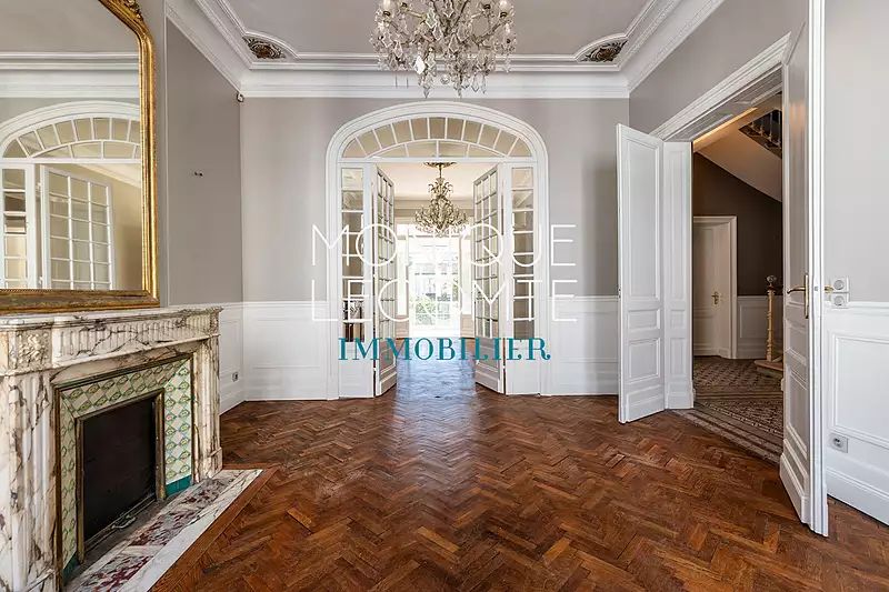 Bordeaux-Barrière du Médoc proche de l'Institut Culturel Bernard Magrez, l'Agence Monique Lecomte Immobilier vous propose à la vente cet hôtel particulier de 435m2 habitables environ, 5 chambres, avec jardin de 350m2 et une dépendance habitable de 140m2. Idéalement situé dans une jolie rue calme de Bordeaux, cet hôtel particulier aux prestations anciennes préservées au sein d'une rénovation prestigieuse est organisé sur 4 niveaux. Une belle entrée ouvre sur une triple réception de 70m2 avec cheminées donnant sur une véranda puis la terrasse qui permet l'accès au jardin sud doté d'une piscine. Ce premier niveau dispose aussi d'une cuisine séparée avec accès à la terrasse. Au premier étage, se trouvent 3 grandes chambres et deux salles de bains. Le second est occupé par deux chambres et un espace de 40 m2 à imaginer. En rez de jardin, 145m2 avec belle hauteur sous plafond s'organisent avec une cave voutée, une buanderie et une salle de sport avec accès direct vers le jardin. Une dépendance se trouve en fond de parcelle avec accès indépendant : 140 m2 habitables avec garage de 20m2. Somptueux lieu de vie familiale, ou professionnel à proximité immédiate du tramway, des commerces, du Parc Bordelais ou des Ecoles de renom (L'assomption, Tivoli et Grand Lebrun). Rare. (3.23 % honoraires TTC à la charge de l'acquéreur.)