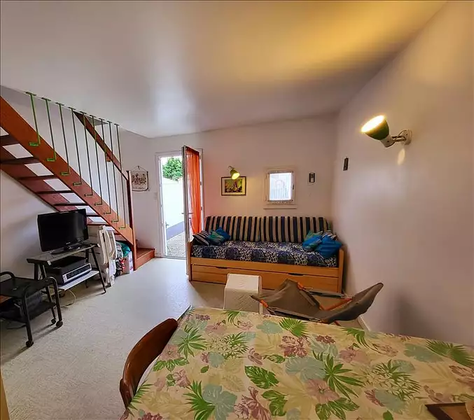 IDEAL RESIDENCE SECONDAIRE , proche des plages de la Sauzaie et de la Parée. Cette charmante maison se compose d'une pièce de vie avec cuisine donnant sur une terrasse extérieure , wc et rangement. A l'étage : 2 chambres et une salle d'eau . PISCINE et terrain de tennis dans la copropriété . Proposition d'aménagement virtuel non contractuelle en dernière photo. Logement à consommation énergétique excessive : classe G