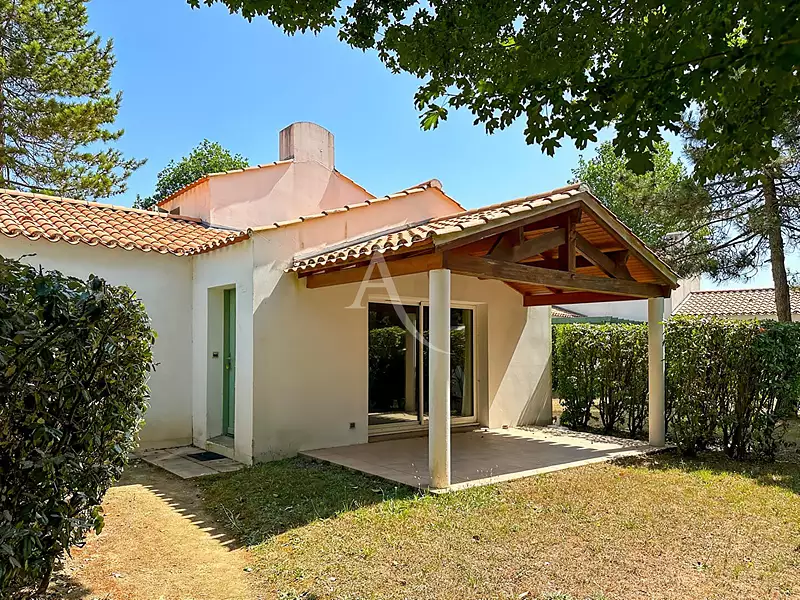 SAINT JEAN DE MONTS - A VENDRE - Dans une résidence avec piscine chauffée, au coeur d'un parc arboré, pavillon de plain-pied comprenant salon-séjour avec cuisine ouverte, deux chambres avec placard, salle de bains, WC indépendant, préau, terrasse sur jardinet. Parking privé. Proche forêt, plage et centre-ville avec les pistes cyclables. Idéal pour les vacances ou la location courte durée. Ravalement de façade en cours, payé par le vendeur. Réf. 10477 Pour toute information complémentaire ou visite, contactez-nous au 02.51.58.01.74 ou par mail (6.56 % honoraires TTC à la charge de l'acquéreur.) Copropriété de 55 lots - dont 55 lots habitation. (Pas de procédure en cours). Charges annuelles : 1556 euros.