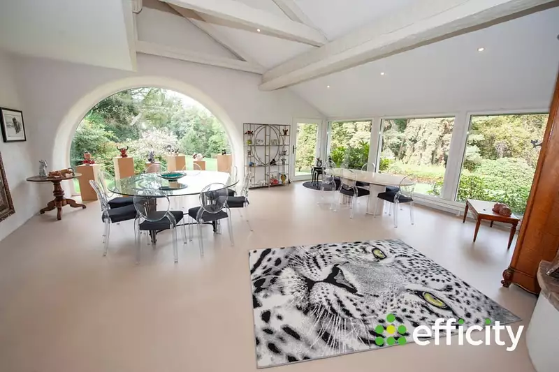 Avec ses 444 m² habitables, cette maison d'exception vous accueille avec un séjour cathédral de 70 M², avec sa salle à manger attenante de 37 M², son salon de 26 M² ouvert également sur une cuisine moderne et très lumineuse de 28m², le tout est baigné de lumière naturelle, sublimé par une bibliothèque imposante et une vue spectaculaire sur les espaces verts.