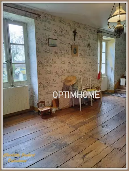Des travaux sont à prévoir ( électricité, isolation, assainissement, pièces d'eau,.....) , le chauffage central est au fuel (chaudière HS) et les huisseries sont en simple vitrage bois.