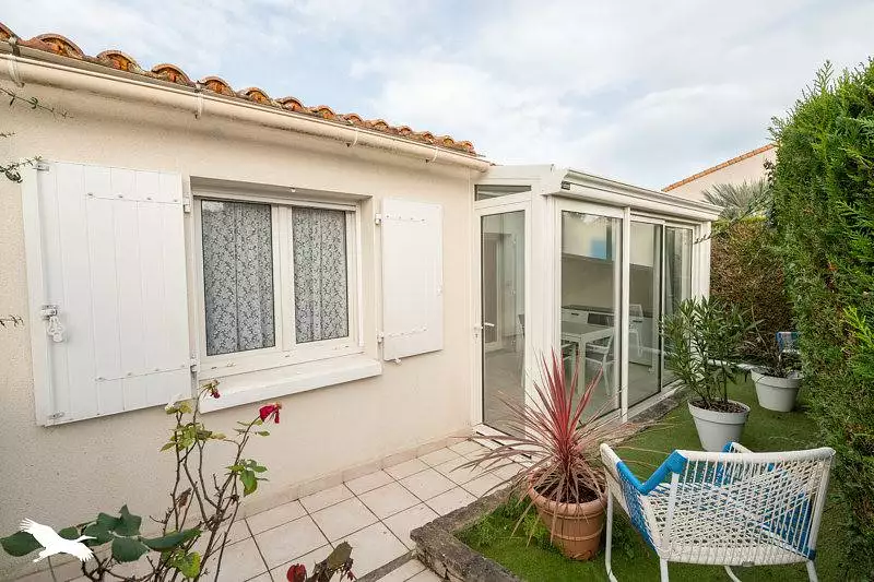 Proche du Lac et des commerces, maison de 44,9 m² loi carrez, dans résidence avec piscine, offrant : séjour avec coin cuisine aménagée, 2 chambres avec placards, salle d'eau, wc et mezzanine. La véranda de 12 m² vous apportera un confort supplémentaire. Jardinet avec abris. 1 place de stationnement privative.
