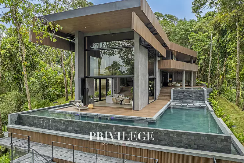 À quelques minutes de Dominical, avant d'atteindre la célèbre queue de baleine d'Uvita, cette villa d'architecte est idéalement située dans le prestigieux secteur d'Escaleras. Nichée au cœur de la jungle et offrant une vue à couper le souffle sur l'océan, cette résidence allie parfaitement luxe et nature. Actuellement en cours de finition, elle sera prête à accueillir ses futurs propriétaires dans quelques semaines.