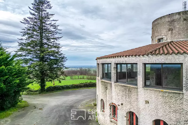 Sur les hauteurs verdoyantes du bocage vendéen, à deux pas de la petite cité de caractère de Pouzauges, ce moulin des années 30, chargé d'histoire, se dévoile comme un véritable écrin de possibilités. Implanté sur un terrain de près d'un hectare, il abrite une bâtisse principale de plus de 350 m² à réinventer, ainsi qu'une habitation attenante de 100 m², dans un cadre naturel préservé où le temps semble suspendu. Ancienne auberge pleine de charme, ce lieu unique a vu défiler les générations autour d'un bar accueillant et d'une salle de restauration conviviale. Aujourd'hui, il appelle à une nouvelle vie, riche de projets et de rencontres. Que ce soit pour y implanter une activité touristique, un lieu de réception, un espace de coworking rural, ou tout autre projet professionnel ambitieux, le potentiel est immense. La grande salle de réception de 150 m², avec ses poutres apparentes et ses larges ouvertures, offre une vue à couper le souffle sur la campagne environnante. Une cuisine professionnelle prolonge harmonieusement l'espace. Et sur le toit, véritable point d'orgue du moulin, une table d'orientation à 360 degrés, accessible par un escalier en pierre, domine le paysage, un panorama inspirant pour celles et ceux en quête d'un lieu hors du commun. Le terrain judicieusement aménagé permet de profiter du paysage dans un cadre paisible. Cet habitat permet d'accueillir une activité professionnelle, tout en conservant son intimité grâce à un espace privatif. Cet havre de paix au coeur de la campagne en fait un bien rare par le confort de vie qu'il propose et son emplacement. La situation géographique stratégique de cette propriété est idéale pour découvrir cette région. Un ensemble immobilier rare et à fort potentiel pour les investisseurs est à seulement 15 minutes du Puy du Fou, des Herbiers, 45 minutes de La Roche sur Yon et Cholet et une heure de Nantes, Angers et du bord de mer. Classe Énergie : vierge - Classe Climat : vierge Contact : Antoine Prieur 06.33.49.49.75 Les honoraires sont à la charge du vendeur. Les informations sur les risques auxquels ce bien est exposé sont disponibles sur le site Géorisques pour les zones concernées.