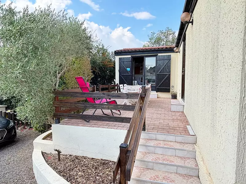 Situé au fond d'une impasse, au calme, agréable chalet en bon état comprenant une cuisine, un salon, 2 chambres, 1 salle de bains, 1 wc. 2 terrasses. 1 place de parking. Climatisation réversible. Terrain de 238m2. Le domaine est équipé d'une grande piscine, de courts de tennis... A quelques km des plages.