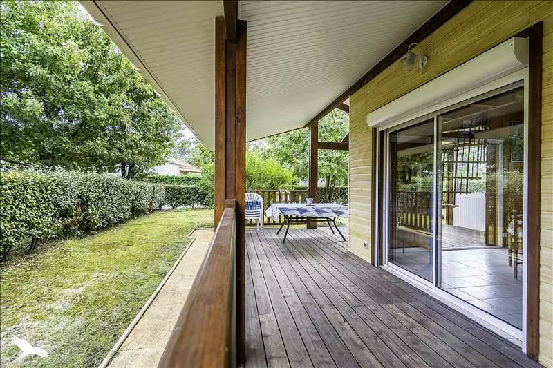 Charmant chalet niché au calme dans une copropriété familiale. Parfait pour un pied à terre de vacances en bord de mer ou un investissement locatif, il offre une chambre en rdc et une à l'étage ainsi qu'une grande terrasse couverte sur une jolie parcelle arborée. Piscine et tennis dans la copropriété. A découvrir! Proposition d'aménagement virtuel non contractuelle en dernière photo.