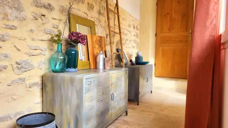 Située sur les hauteurs de la vallée de la Cèze, cette demeure en pierre, entièrement rénovée, vous offre une qualité de vie exceptionnelle! Si vous aimez la nature , elle est faites pour vous! (tout en restant proche des commodités) Elle est composée d'un très grand séjour (salle-à-manger, salon) de plus de 70m², baigné de lumière. Une cuisine équipée, une très grande suite parentale, avec une vue exceptionnelle sur les vignes (possibilité d'achat) et sa terrasse privative, 4 autres chambres et leurs salles d'eau, un bureau, une pièce insonorisée (studio d'enregistrement ou de musique) , cellier, buanderie... et bien sûr , la piscine à débordements en pierres de Bali et sa cuisine d'été. Elle possède aussi un deuxième séjour, salle-à manger , salon ,cuisine, qui vous permettra de recevoir vos amis indépendamment de l'habitation principale ou faire de la location et chambres d'hôtes. Le tout est rénové avec charme et prestige , toiture neuve, (travaux de 2016 à 2020). Vous posez vos valises. A voir en vrai, n'hésitez-pas à m'appeler! Fabienne Tournay RCS Nimes 840566376 Possibilité d'acheter plus de terrain, pour des chevaux, par exemple ou de l'exploitation viticole. Fabienne TOURNAY (EI) Agent Commercial - Numéro RSAC : 845384601 - NIMES.