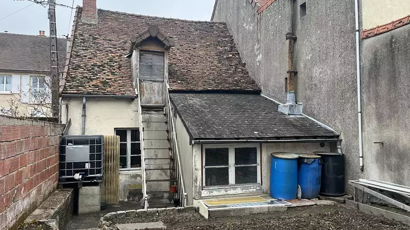 Autun Maison de 46 m² à réhabiliter, ancien séjour de 36 m² avec tomettes, poutres et cheminée, cuisine de 10 m² sur l'arrière avec WC. Cour de 20 m². Pas de chauffage.