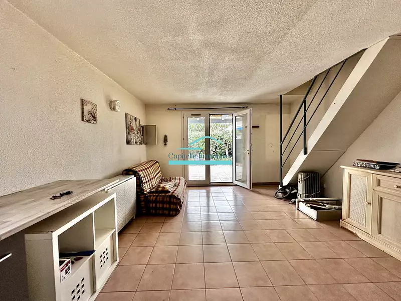 A Vic-La-Gardiole et en exclusivité chez Capitelle Immobilier Mireval , villa T3 d'environ 46m2 comprenant au rez-de-chaussée un bel espace de vie avec coin cuisine , un toilette. A l'étage une salle de bain , 2 chambres . Coté exterieur un jardin privatif d'environ 45m2 très bien ensoleillé , une belle terrasse couverte , un local de rangement et une place de parking privative à proximité immédiate de la villa .