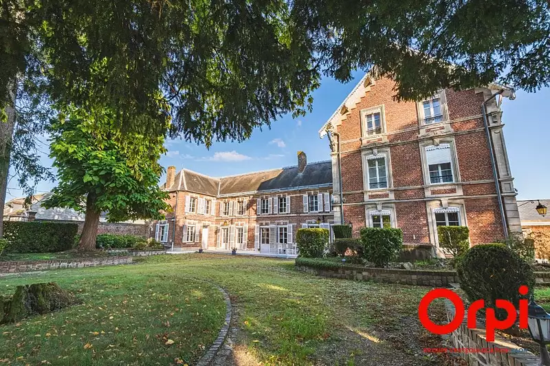 Sous le charme des briques et des pierres typiques de la région, demeure d'exception du milieu du XIXᵉ siècle incarne l'élégance et le caractère d'une demeure de famille authentique. En forme de U, elle s'ouvre sur un vaste parc arboré qui offre calme, lumière et intimité.