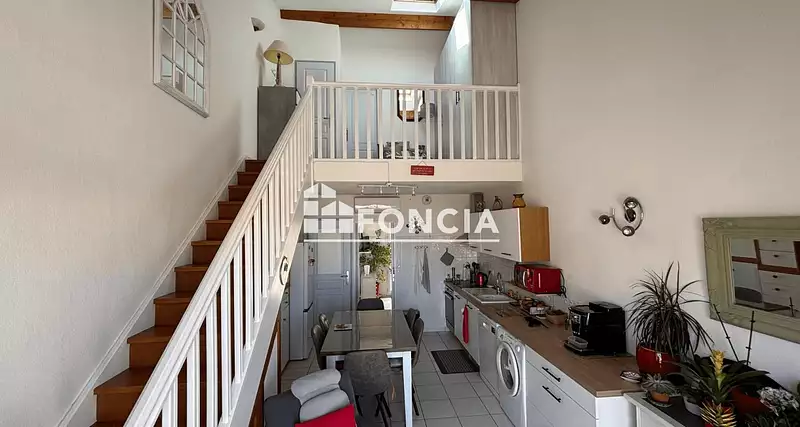 D'une superficie de 47 m2, comprenant au rez-de-chaussée, un séjour avec cuisine aménagée et équipée, une salle d'eau avec WC, une chambre ainsi qu'un patio arrière de 6m2 environ. A l'étage, une mezzanine avec placard de rangement sur mesure, W.C indépendant et d'une chambre avec placard de rangement.