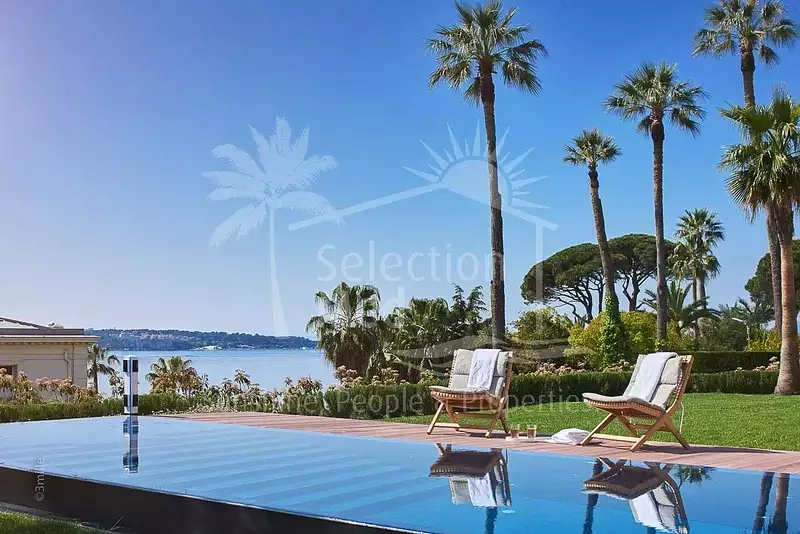 Au sein de l'un des domaines les plus exclusifs de Cannes, en bordure du littoral, cette somptueuse villa de style californien s'étend sur environ 500 m² et est entourée d'un terrain paysager de 2 245 m².