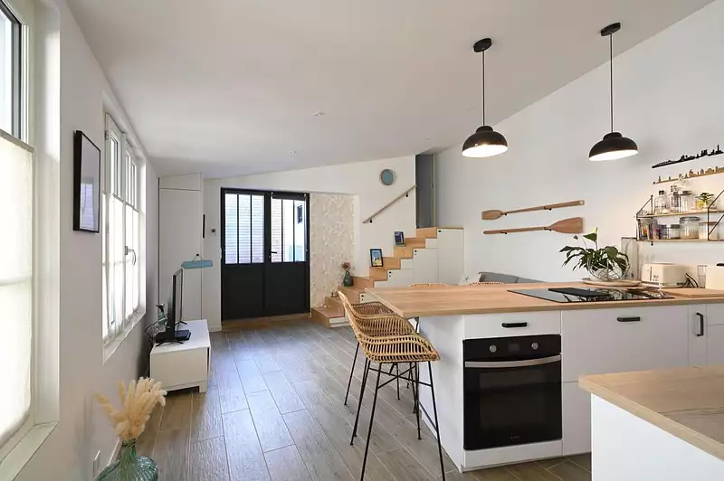 Immobilier Ile De Ré, La Flotte, charmante maison de village idéalement située à proximité immédiate des commerces et du port. Rénovée avec goût, elle offre 2 chambres, un séjour lumineux, une terrasse intime sans vis-à-vis et un local vélos. Elle associe volumes agréables et confort moderne. Contactez nous pour visiter ce véritable coup de cœur.
