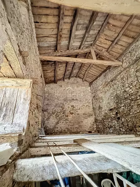 Avec une superficie de 48 m2 au sol, cette grange permet d'envisager un rehaussement pour créer jusqu’à trois niveaux, ainsi qu'une terrasse sur le toit, parfaite pour profiter pleinement du cadre paisible et du charme du village.