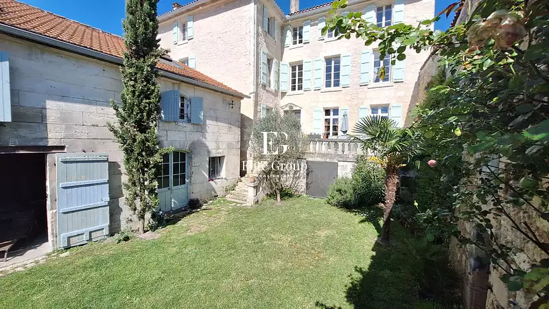 Elite Group Real Estate vous fait découvrir à la vente cette magnifique maison de 495 m² en plein coeur de Châteauneuf sur Charente. Le mariage réussi du charme et de la commodité : Une propriété à 20 minutes d'Angoulême et bénéficie d'un accès immédiat aux commerces de proximité. Au rez-de-chaussée, un atout de cette maison est son local commercial de 60 m² côté rue, dont la transformation en espace de vie est envisageable. Les sols d'origine ont été conservés, et un coin cuisine ainsi que des toilettes sont installées permettant l'usage indépendant de cette surface. Elle dispose d'un charmant salon aux murs en bois typiques du XIXe siècle qui bénéficie d'une excellente exposition plein SUD, une cuisine avec arrière-cuisine. Une aile de la maison, située au même niveau, est entièrement aménagée en une suite parentale comprenant, en enfilade, un bureau, une salle d'eau et une chambre de 50 m². L'étage s'ouvre sur un vaste palier agrémenté d'un coin lecture, distribuant trois belles chambres dont l'une bénéficie de sa salle d'eau privative avec toilette. Au bout du couloir, une spacieuse salle de bains équipée d'une douche et d'une baignoire complète cet étage. Au deuxième étage, découvrez deux vastes espaces d'environ 50 m² chacune, dont la charpente apparente confère un charme indéniable. Elles servent aujourd'hui de salle de sport et de salle de cinéma. On y trouve également une cinquième chambre plus isolée avec son petit espace d'eau privatif. La façade jardin de cette maison s'ouvre sur une superbe terrasse de 30 m² en travertin. Un escalier en pierre conduit au jardin clos, arboré et sans aucun vis-à-vis, ou sont situés un garage de 50 m², un atelier et une cave d'environ 140 m². Cette propriété offre une double entrée : Une sur la rue et une autre, plus privée, par un portail côté jardin. Idéalement situé à Châteauneuf sur Charente et de la gare pour un trajet direct vers Angoulême. Laissez-vous séduire par ce bien rare où il fait bon vivre, une opportunité unique à ne pas manquer ! Contact: Adrian Meunier Elite Group 06 88 64 13 61 (5.49 % honoraires TTC à la charge de l'acquéreur.) Adrian MEUNIER (EI) Agent Commercial - Numéro RSAC : 981 418 320 - ANGOULEME.