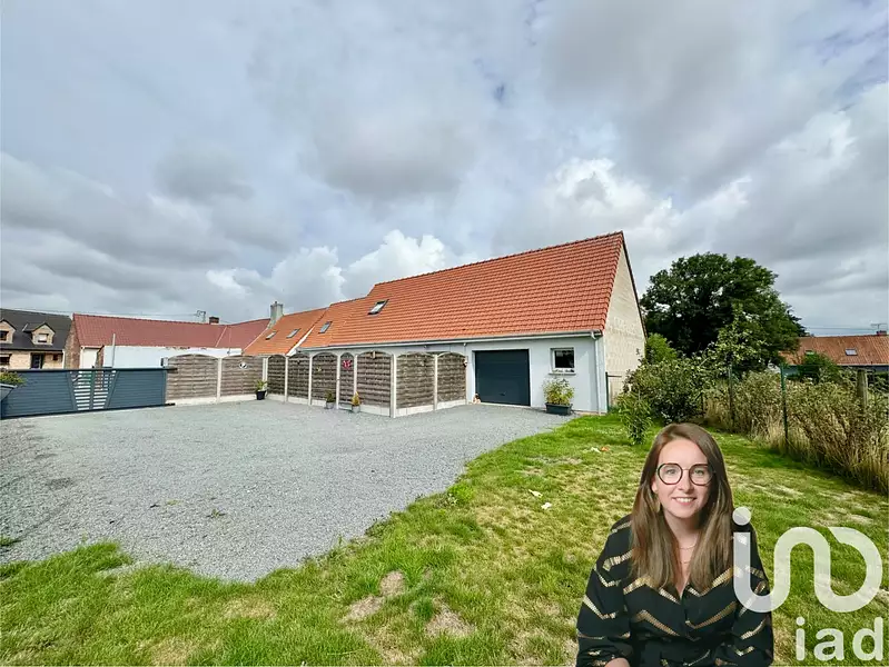 iad France - Gaëlle Puype vous propose: Superbe maison individuelle de 49m² parfaitement entretenue sur un vaste terrain constructible de 500m² avec garage de 30 m² située à Pihem avec combles aménageables de 25 m².