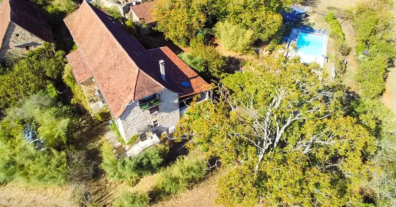 Située dans un hameau du XIVème siècle à 6 Km de la ville de Figeac dans le Lot, ancienne maison "forte" rénovée au fil des années avec goût et rigueur de manière à préserver son charme et son authenticité. La propriété comporte une imposante maison d'habitation et des dépendances dont une typique grange fourragère Quercynoise. La propriété offre de l'ordre de 500 m² habitables répartis comme suit : - 2 gîtes indépendants [capacités respectives (2+2) (2+3)], - 3 chambres d'hôtes opérationnelles - ainsi qu'un espace privé de plus de 200 m² env. La rénovation a privilégié les matériaux authentiques sans sacrifier au confort de la modernité. Des nombreux matériaux anciens ont été préservés. On apprécie tout particulièrement les charpentes anciennes, poutres apparentes et parquets massifs et trois cheminées imposantes (l'une, rustique, est agrémentée d'un insert à bois récent, la seconde, en pierre de taille du XVIIème siècle, la troisième, monumentale, en pierre de taille du XIVème siècle). Les hôtes accueillis dans ce lieu historique apprécient son atmosphère chaleureuse, conviviale et empreinte de quiétude. La présence de meubles anciens et d'œuvres d'art, compris dans la vente, contribuent à l'atmosphère ambiante. A l'extérieur, la propriété se compose de différents espaces délimités de murs en pierres sèches, d'un potager entouré d'arbres fruitiers, d'une serre totalement automatisée. Puis, en bout de propriété, une piscine (traitée au sel) est composée de 2 bassins avec débordement et volets automatisés avec commandes à distance et autonome en eau (assurée avec un puits). Adossé à la piscine, le pool-house (avec cuisine d'été) est gage de moments de convivialité ou de méditation. Enfin, une grange (dont le premier niveau est un plateau d'environ 120 m²) est répertoriée comme grange remarquable du Lot et reconnue au titre de la Fondation du Patrimoine. Elle peut offrir, après rénovation, la possibilité d'ouvrir l'activité à des mariages, séminaires avec dans de tels cas : la garantie d'un fort potentiel de croissance pour une activité d'accueil (à noter que des subventions pourront être obtenues pour mener à bien ce projet de rénovation sous l'égide de l'Architecte des Bâtiments de France qui a déjà avalisé de nombreux aspects du projet). La configuration de la propriété au sein du hameau préserve l'intimité de ses occupants et cela grâce au jardin privatif que possède chaque maison et à une circulation fluide liée à la présence de nombreux chemins. Des espaces intimistes extérieurs contribuent au charme de l'ensemble. A noter que le site est sécurisé avec réseau de caméras et poste centralisé de pilotage. Le prix comprend les meublants ainsi que dans le cas d'un projet d'accueil : l'activité [avec formation et mise en main de l'outil commercial (dont le site de réservation et de gestion)]. Ne tardez pas à venir découvrir cette propriété unique offrant charme et authenticité historique, adaptée au confort moderne. Idéale pour recevoir, ou pour s'isoler, dans un havre de nature et de quiétude Une opportunité pour qui souhaite habiter et exploiter une activité d'accueil dejà opérante. Le secteur de Figeac est très touristique et le bassin d'emplois est particulièrement dynamique. Les informations sur les risques auxquels ce bien est exposé sont disponibles sur le site Géorisques : www.georisques.gouv.fr »