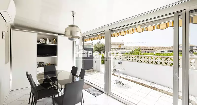 Terrasse extérieure avec store ban électrique pour profiter de l'extérieur en toute saison