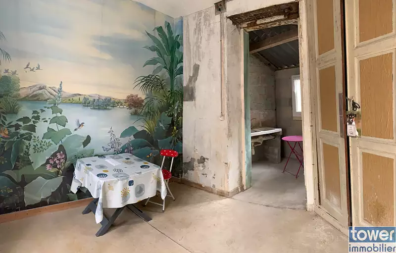 - au rez-de-chaussée : entrée de 5.50 m2, séjour salon de 9.20 m2, cuisine de 4.30 m2 ( à restaurer ), patio de 18 m2, pièce de 11 m2 à restaurer ( plomberie , élec, isolation,... )