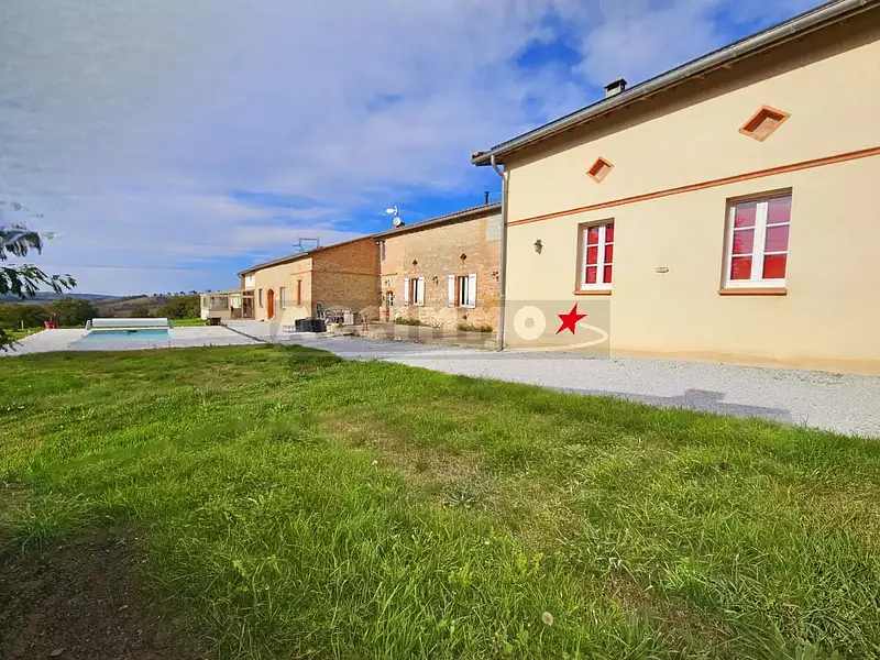 Lanta secteur - ACCIMMO vous propose cette propriété d'environ 512 m² composée de 14 pièces, située sur une parcelle d'environ 1,5 hectare. Cette vaste propriété se divise en plusieurs espaces distincts et complémentaires. Sur l'aile droite : une maison d'environ 200 m², idéale pour un usage privatif, offrant une magnifique pièce de vie d'environ 100 m². Cet espace lumineux regroupe une cuisine, un salon, une salle à manger et une buanderie, agrémentés d'une mezzanine. La maison comprend également trois chambres, une salle de bains et bénéficie d'une piscine à usage privé. Un logement indépendant d'environ 100 m², aménagé pour la location saisonnière, avec une capacité d'accueil allant jusqu'à six personnes. Ce logement, qui peut être relié à la maison principale. Concernant l'aile gauche : cette partie se compose de cinq logements actuellement loués à l'année, avec des baux en cours. Les logements incluent cinq appartements dont quatre T2 de 30 à 45 m² chacun et un T3 d'environ 65 m². L'ensemble est implanté sur un terrain clos et paysagé de 1,5 hectare, proposant de nombreux atouts extérieurs : une bergerie, un espace détente avec barbecue, une terrasse, un puits et des panneaux solaires pour un meilleur rendement énergétique. Un parking de 10 places, avec des emplacements numérotés et privatifs, est également à disposition pour chaque logement. La propriété bénéficie de menuiseries en double vitrage (PVC et bois), de plusieurs systèmes de chauffage (électrique, cheminée, poêle à bois et granulés) et de deux fosses septiques. Enfin, des combles offrent un potentiel supplémentaire pour des projets d'agrandissement ou d'aménagement. Située à moins de 12 minutes de Lanta, avec toutes ses commodités, cette propriété unique allie rendement locatif, confort et cadre de vie exceptionnel, parfaite pour un projet d'investissement ou de vie familiale. Honoraires à la charge du vendeur. Contacter Charline THARET à l'agence ACCIMMO-81 Lavaur, au 05.81.02.38.89 ACCIMMO, le spécialiste de l'immobilier dans le TARN et l'Est Toulousain, avec ses agences, vous propose un large choix de biens sur les communes de Lavaur, Graulhet, Puylaurens, Saint-Paul cap de Joux, Albi, Castres, Fiac, Damiatte, Saint-Sulpice, Parisot, Briatexte, ainsi que toutes les communes environnantes.
