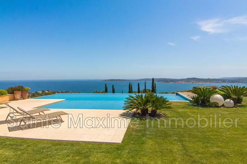 En position dominante cette propriété est positionnée sur un terrain plat arboré dominant tout le golfe de Saint-Tropez. La villa a été pensée pour profiter pleinement du point de vue, avec ses larges ouvertures orientées vers la mer. Vastes terrasses donnant sur la piscine à débordement chauffée. Grand salon, salle à manger, immense cuisine, 5 chambres, 5 salles de bains. 430 M2 habitables. Terrain de 3700 M2