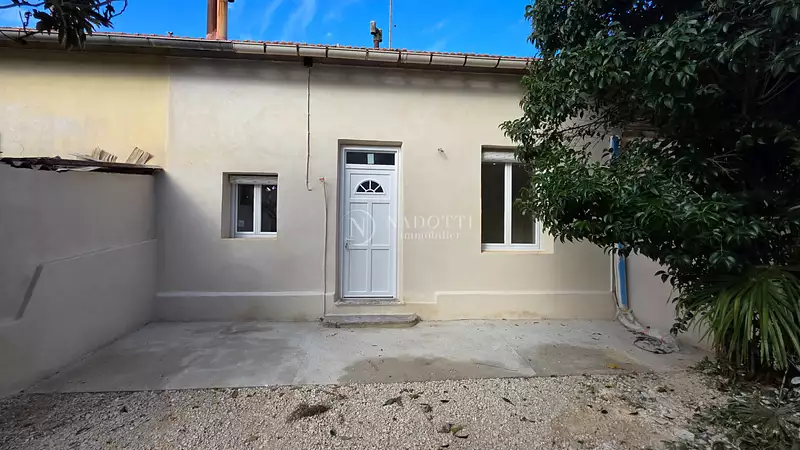 L'Agence NADOTTI Immobilier vous propose cette petite maison de ville entièrement rénovée ( électricité, plomberie, carrelage, peinture, chauffage, fenêtres PVC double vitrage, façade) Elle comprend une cuisine aménagée, un salon, deux chambres, une salle d'eau et wc séparée. A l'extérieur, vous profiterez d'une petite cour privée . Le chauffage est assuré par une climatisation réversible. A saisir rapidement