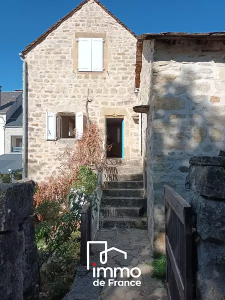 Jolie maison T3 en pierre située au coeur du village de Montrodat. L'accès se fait par un escalier en pierre qui dessert une petite buanderie, une pièce d'été et la maison. On rentre dans une grande pièce de vie/cuisine avec cheminée, un escalier bois mène à l'étage composé de deux chambres et une salle de bain/WC. Au rez de chaussée il y a une grande cave voutée ainsi qu'un petit jardinet. Vendu avec la maison un terrain de 108 m². Travaux de rénovation à prévoir.