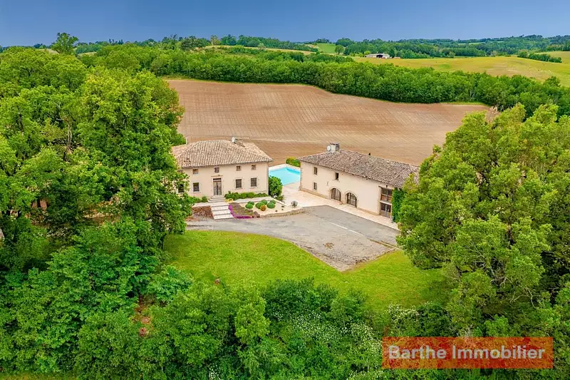 Dans un havre de paix, à mi-chemin entre Gaillac et Montauban et 10 minutes du jolie village de Bruniquel, au calme et sans vis à vis, sur 7ha de terres agricoles, ce bel ensemble immobilier se compose de :