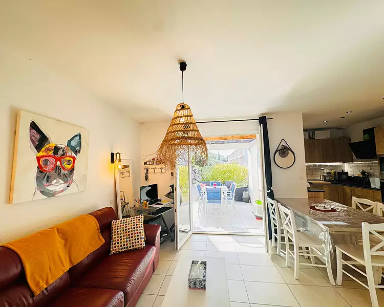 LOZARI -BORD DE MER- MINI VILLA DE STANDING AVEC TERRASSE ET JARDIN Dans une copropriété bien entretenue avec piscine à seulement 450 m de la plage de Lozari et des commerces. MARE IMMO vous propose cette charmante villa d'une surface de 54.96 m² de plain-pied, vous serez séduits par son espace extérieur : jardin joliment arboré et terrasse. En voici sa distribution : Entrée sur le séjour/cuisine équipée et ouverte, un dégagement dessert la partie nuit , 2 chambres ouvrant sur le jardin, salle d'eau avec baignoire et douche à l'italienne. Ce bien est vendu avec un emplacement de parking privatif (5.30 % honoraires TTC à la charge de l'acquéreur.) Copropriété de 110 lots - dont 110 lots habitation. (Pas de procédure en cours). Charges annuelles : 2967.28 euros.