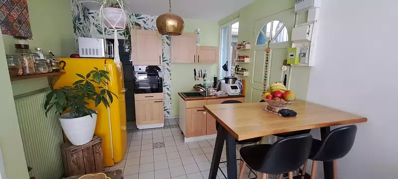 Maison de ville à st ThomasProche boulingrin, tram et gareSéjour ouvert sur cuisine Us, 2 chambres, salle de douche wc, caveCcgaz de villeEnsemble soigné en bon état pret à vivre