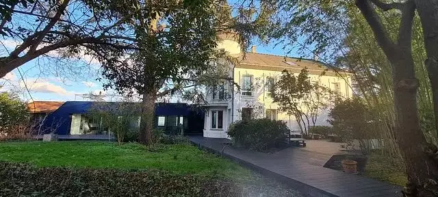 Suresnes -Mont-Valérien. Maison contemporaine avec une vue exceptionnelle sur Paris entièrement rénovée. D'une surface habitable de 650m2 implantée une parcelle de 1200m2 (le plus grand terrain de Suresnes) sur 4 niveaux, dont 120 m2 au sol encore constructible.