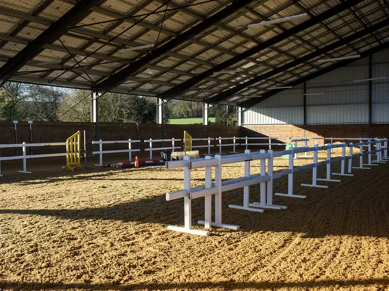 • Un manège couvert éclairé (36 x 18 m) avec une surface en fibre haute performance