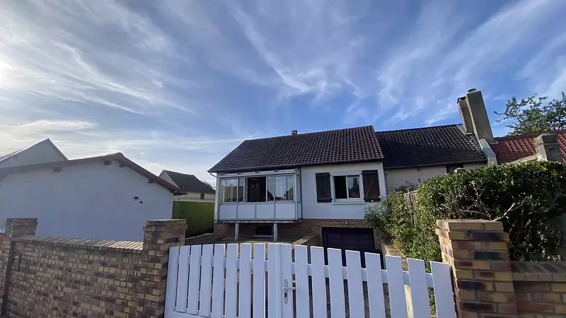 Une entrée donnant sur un séjour lumineux et un espace véranda d'environ 20m2, une cuisine aménagée, une salle de bain avec WC séparé et 2 chambres de 10m2.