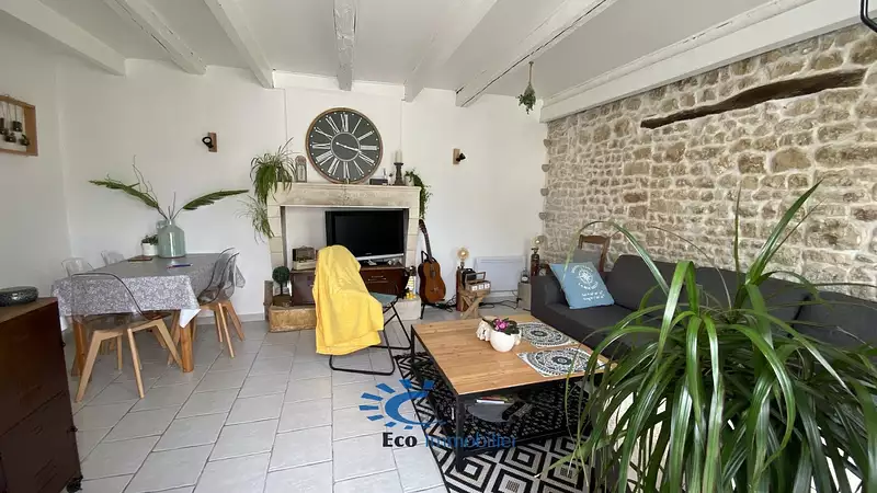 EXCLUSIVITE PERIGNY maison de 55 m² habitable avec 1 chambre et un deuxième espace couchage. Cette maison se compose au rez-de-chaussée d'un salon séjour avec pierres apparentes, cuisine indépendante aménagée entièrement équipée. A l'étage : 1 chambre et un espace bureau ou deuxième couchage, salle d'eau avec wc. Proche des commerces à pied, bus de ville ligne N°8 pour la rochelle, écoles . (5.37 % honoraires TTC à la charge de l'acquéreur.)