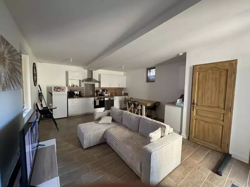 Au premier étage, découvrez une belle pièce de vie lumineuse avec une cuisine moderne entièrement refaite. L'ensemble est climatisé pour un confort optimal en toutes saisons.