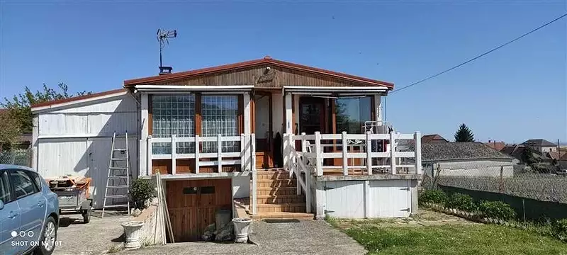 Maison comprenant une entrée par véranda double vitrage - cuisine aménagée de 8.75m² - salon de 14.95m² avec cheminée insert - 1 chambre 9.10m² et une pièce possibilité chambre ou bureau de 6.68m²- salle d'eau avec WC