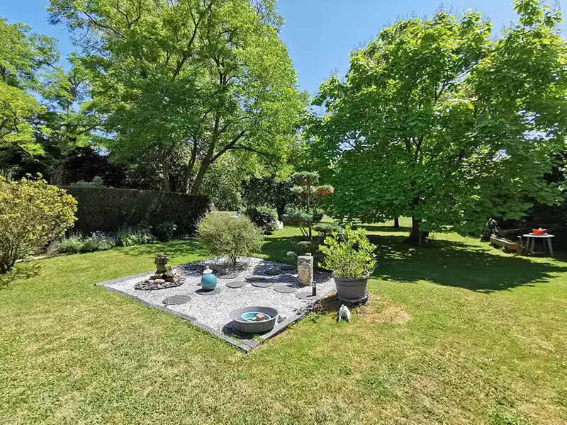 Parc clos et arboré de 6 000 m2 avec verger sans vis à vis et au calme.