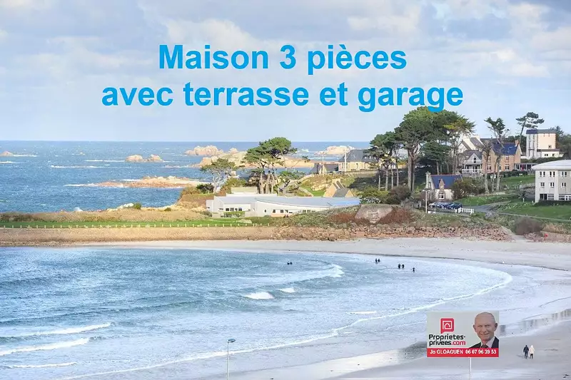 EXCLUSIVITÉ. Côtes d'Armor. Proche de Perros Guirec, belle vue mer de toutes les pièces et à 100 m de la plage, maison de 50 m2 Carrez, ( 56 m2 de surface plancher) avec garage aménageable de 30 m2 et parking. 3 pièces, 2 chambres. En rez de jardin: Entrée, séjour-cuisine aménagée et équipée donnant sur terrasse au sud-ouest, un wc. A l'étage: : palier avec dressing, 2 chambres, une salle de bain--wc. En rez de chaussée côté mer: un garage aménageable de 30 m2 avec douche et coin buanderie. Environnement calme. Terrasse carrelée, ensoleillée et à l'abri des vents et des regards côté ouest sur jardin sans vis à vis. Parking privatif. Prestations de qualité. Nombreuses commodités à pied. Idéal pour location saisonnière à bonne rentabilité ou pour les vacances à la mer. Aucun travaux à prévoir. Budget : 289 000 euros honoraires à la charge du vendeur. Information d'affichage énergétique sur ce bien : classe ENERGIE : E, indice 296 et classe CLIMAT : B, indice 9. Le DPE passera en D au1/01/2026:; Les informations sur les risques auxquels ce bien est exposé sont disponibles sur le site Géorisques : www.georisques.gouv.fr. Pour visiter et vous accompagner dans votre projet, contactez Jo Gloaguen, au 06 07 96 39 53 ou par courriel à . Visio possible sur demande. Cette présente annonce a été rédigée sous la responsabilité éditoriale de Jo Gloaguen agissant sous le statut d'agent commercial immatriculé au RSAC St Brieuc n°750 363 079 auprès de la SAS PROPRIETES PRIVEES, Réseau national immobilier sur internet, ZAC du Chêne Ferré, 44 Allée des Cinq Continents, 44120. VERTOU, RCS NANTES n° 487 624 777, Carte professionnelle T et G n° CPI 4401 2016 000 010 388 CCI Nantes-Saint Nazaire, Garantie GALIAN, 89 rue La Boétie, 75008 Paris - T : 1 500 000 euros - G : 120 000 euros. Mandat réf : 428530. Achats, ventes, estimations offertes, Le professionnel garantit et sécurise votre projet immobilier.