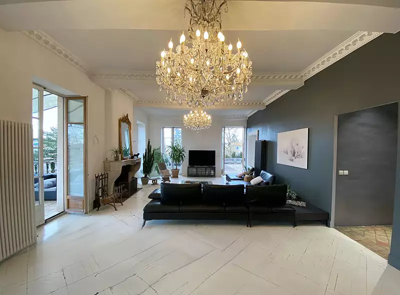 A Décines-Charpieu, au sein d'une propriété sécurisée, cette superbe Maison de Maître du 19ème siècle propose 570 m² habitables répartis sur 3 niveaux. Le terrain de 770 m² inclut des espaces de verdure, de très belles terrasses, une gloriette végétale et des aires de stationnement. Vous serez séduits dès l'entrée par un magnifique escalier en pierres, par les vastes pièces de réceptions lumineuses largement ouvertes sur les terrasses, le charme des cheminées, des boiseries et des hauts plafonds. Les étages supérieurs proposent 8 chambres, 2 salle de bains, salle d'eau, dressing, bénéficiant de tout le confort contemporain. Une superbe cave à vin de 60 m² complète ce bien exceptionnel. Au calme et à l'abri des regards, proche de l'OL Vallée et de ses accès faciles, cette demeure bourgeoise et son environnement sauront vous séduire. Contact : Corine Monneret 06 60 69 33 79
