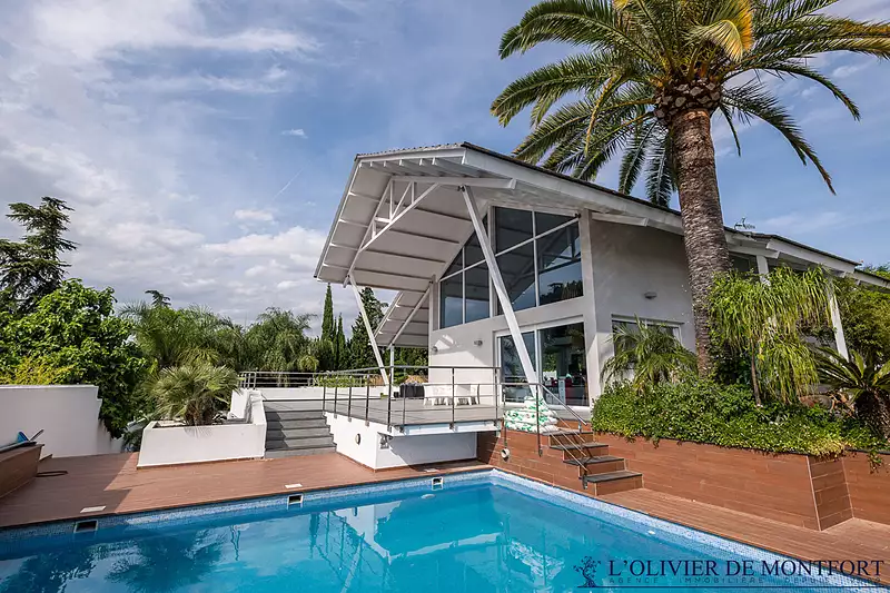 Réf.645c Ce bien unique est contemporain par sa construction architecturale offrant une verticalité digne des meilleurs lofts de New York et avec le confort de la vie à la campagne. Cette magnifique maison est située dans l'un des meilleurs quartiers résidentiels de la ville de Valence, L'Eliana, est une zone consolidée située à la campagne à proximité des forêts, des rivières, des espaces verts, des montagnes de la Sierra Calderona et à distance de marche des belles plages qu'offre la Méditerranée. Tout cela sans renoncer à une large offre culturelle avec une multitude d'activités, une restauration de qualité avec des restaurants étoilés Michelin et de nombreuses boutiques qui proposent les meilleures marques internationales, principalement européennes. La verticalité et l'espace généreux cèdent la place à ce magnifique Lofthouse, l'entrée s'élève par une porte traitée de type industriel. Nous entrons dans un grand espace dans lequel nous trouvons le salon de grandes dimensions, avec d'immenses fenêtres qui laissent place à de grandes terrasses où le soleil entre et les hauts plafonds de plusieurs mètres de haut avec un toit spectaculaire et des poutres métalliques qui se croisent formant des lignes architecturales. Le sol est en parquet, chauffage au sol et climatisation chaud et froid composé de deux unités. En ce qui concerne la décoration, les incroyables lampes sont de la marque Lucifer, des meubles design de différentes maisons. A cet étage, nous trouvons la suite parentale avec dressing et salle de bains attenante avec finitions et robinetterie de marque Porcelanosa. La cuisine intérieure se compose d'un plan de travail, d'un four à micro-ondes, d'un four à vapeur et d'une hotte de la marque allemande Dietrich. Grand îlot de 4 mètres de long en composite conçu sur mesure et personnalisé avec finition effet bois. Un ascenseur permet d'accéder à la zone supérieure avec un espace ouvert avec une deuxième suite avec dressing, salle de bains avec douche et bain à remous Porcelanosa et un deuxième salon et bureau avec accès à une terrasse. Les vues sur la nature sont très agréables de n'importe où dans la maison. A l'extérieur se trouve la deuxième cuisine d'été qui est professionnelle avec poêle et plancha idéale pour les saisons chaudes qui dans la région sont pratiquement toute l'année. Les terrasses extérieures sont construites en grès Porcelanosa grand format effet ardoise et sont idéales pour profiter du magnifique et spacieux jardin zen. La fantastique piscine au sel est située dans le jardin pour profiter de la saison estivale. Au sous-sol de 100m2 se trouve la buanderie, une salle de bain et un immense garage idéal pour les amateurs de voitures. Prix: 1 575 000 EUR dont 5 % de commission d'agence TTC charge acquéreurs. Prix hors honoraires: 1 500 000 EUR (5.00 % honoraires TTC à la charge de l'acquéreur.)