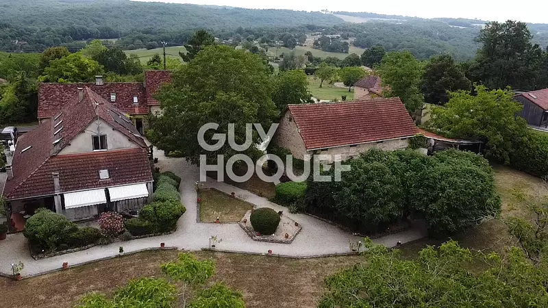 Aux portes de la Dordogne, entre Rocamadour, Sarlat et le Gouffre de Padirac, cette superbe propriété en pierre vous accueille dans un cadre naturel exceptionnel, au coeur d'une région prisée pour son patrimoine et sa douceur de vivre. Idéalement située à Nadaillac-de-Rouge, elle développe plus de 580 m² habitables sur un terrain arboré de 6 077 m². La maison principale d'environ 200 m² offre de généreux volumes : vaste cuisine équipée, séjour lumineux, bureau, véranda et 5 chambres. A cela s'ajoutent 5 gîtes indépendants, entièrement aménagés, permettant une capacité d'accueil importante. L'ensemble est en bon état général, prêt à être exploité sans travaux majeurs. Deux piscines viennent sublimer le tout, pour le confort des hôtes ou des propriétaires. Déjà en activité, la location saisonnière génère une rentabilité brute d'environ 8 % sur seulement 4 mois d'ouverture, avec un fort potentiel de développement sur l'année entière. Charme, rentabilité et emplacement stratégique : une opportunité rare pour un investissement touristique pérenne ou un projet de vie au vert. Dossier complet sur demande. Contactez-nous dès aujourd'hui pour une visite.