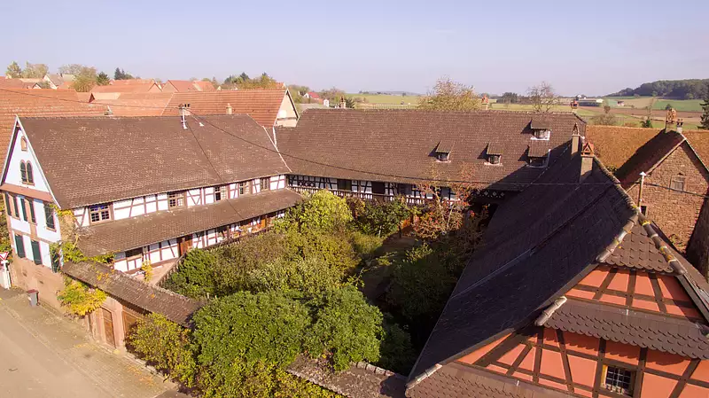 Au coeur d'un village du pays de Hanau, à 40 km de Strasbourg et 30 min de Haguenau, Nord Sud Immobilier vous propose cet authentique corps de ferme Alsacien, datant du 17ème siècle, alliant modernité et tradition. Cet ensemble immobilier, implanté sur un vaste terrain de 30,71 ares, se compose de 2 parties habitations et d'une dépendance. - D'une maison principale ayant conservée son charme ancien d'environ 230 m² sur 3 niveaux comprenant 7 pièces et 2 salles de bain. - D'une seconde maison, ancienne grange réhabilitée, d'environ 360 m² comprenant 8 pièces, 2 salles de bain un studio aménagé et de nombreuses mezzanines avec poêles et Kacheloffe. - D'une grande dépendance offrant de multiples possibilités d'aménagements. A l'extérieur nous retrouvons à l'avant une belle cour pavée avec aménagements paysagers permettant d'accéder aux différentes parties de la propriété et d'un grand terrain à l'arrière avec arbres fruitiers. Ce corps de ferme offre de nombreux matériaux nobles et de haute qualité (tomettes, parquets massifs, différents essences de bois tels que de l'érable, wenge, chêne, poirier). Il conviendrait parfaitement à une famille nombreuse ou à un investisseur souhaitant y installer une activité de gîte, chambres d'hôtes ou autre. Les informations sur les risques auxquels ce bien est exposé sont disponibles sur le site Géorisques : www.georisques.gouv.fr Contact Nord Sud immobilier à Rohrbach les bitche, Bitche, Diemeringen et Sarreguemines.