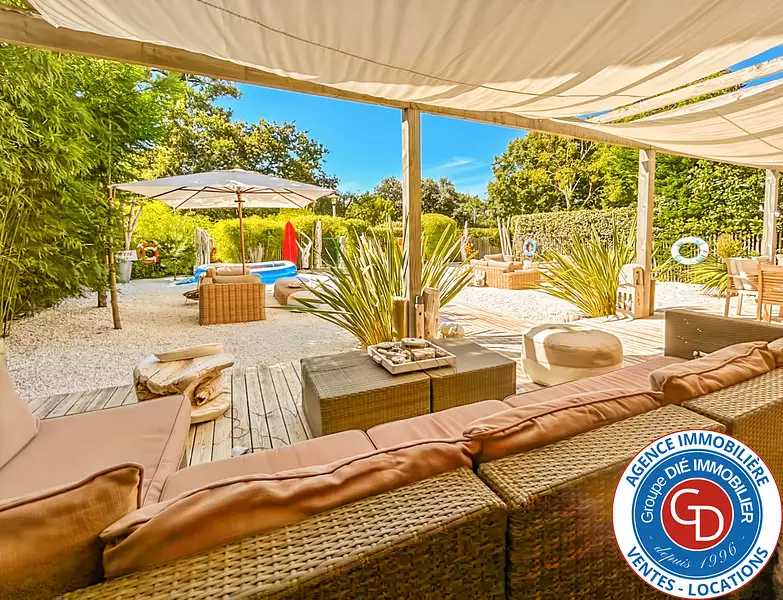 Le tout situé au calme et sans vis à vis (il ne s'agit que d'un couloir pour les fenêtres aux étages), proche des commerces, des plus belles plages (à environ 1km) et des établissements scolaires.