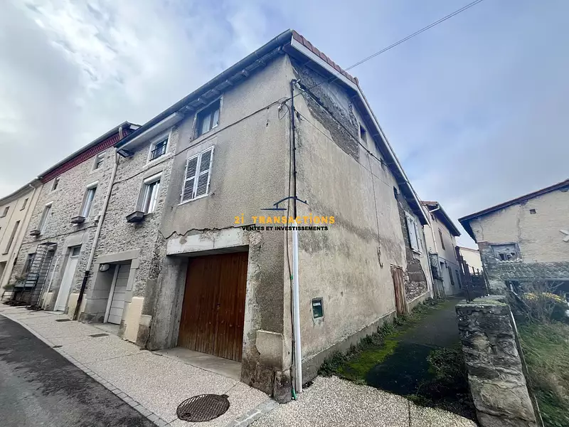 Maison de village à rénover, d'une surface totale d'environ 93m², dont environ 58m² habitables. Répartie sur trois niveaux, elle comprend un rez-de-chaussée avec garage et cave, un premier étage accueillant l'entrée menant à une cuisine lumineuse, une salle d'eau, et une chambre. Les combles sont aménagés en une deuxième chambre. Toiture rénovée il y a environ 10 ans. Située au coeur d'un village charmant avec commerces de proximité. Proche commodités (bus, écoles). Accès rapide A47 vers Saint-Étienne. Idéale pour une vie paisible