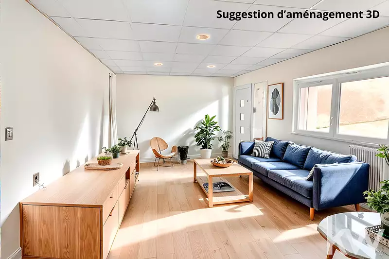 Séjour lumineux avec cuisine ouverte, 2 chambres, salle d’eau moderne, cellier, grenier aménageable (possibilité toit-terrasse).