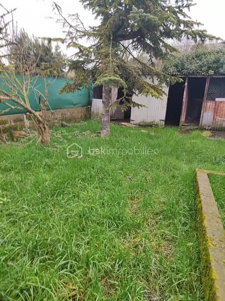 Maison mitoyenne de 58 m² se composant d'une entrée, cuisine, chambre, séjour, salle de douches, wc. Grenier aménageable, petite dépendance, bâtiment, terrasse, petit jardin. Cc fuel récent, menuiserie PVC Double vitrage.