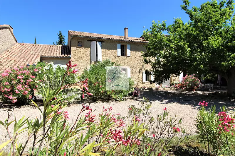 L'ensemble est restauré avec des matériaux anciens de qualité et se compose en un seul tenant et communiquant, d'un Mas d'habitation, une villa et un studio offrant environ une surface habitable de 600m2 avec 14 chambres en tout.