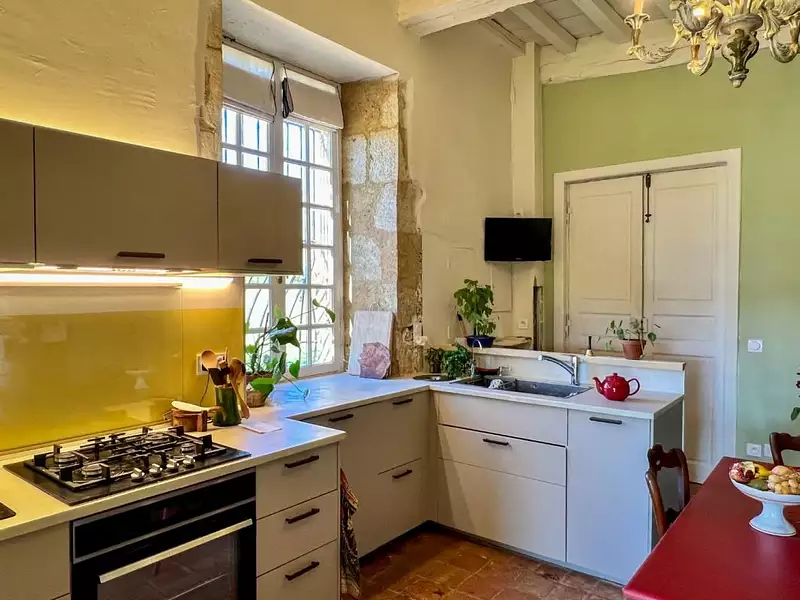 La cuisine se situe un peu à l'écart de la salle à manger, pour plus de facilité et a été récemment rénovée. C'est une pièce chaleureuse et conviviale, avec beaucoup d'espace pour une table de petit déjeuner et des meubles modernes de bon goût. Elle est dotée de tout le matériel électroménager nécessaire à une cuisine moderne.