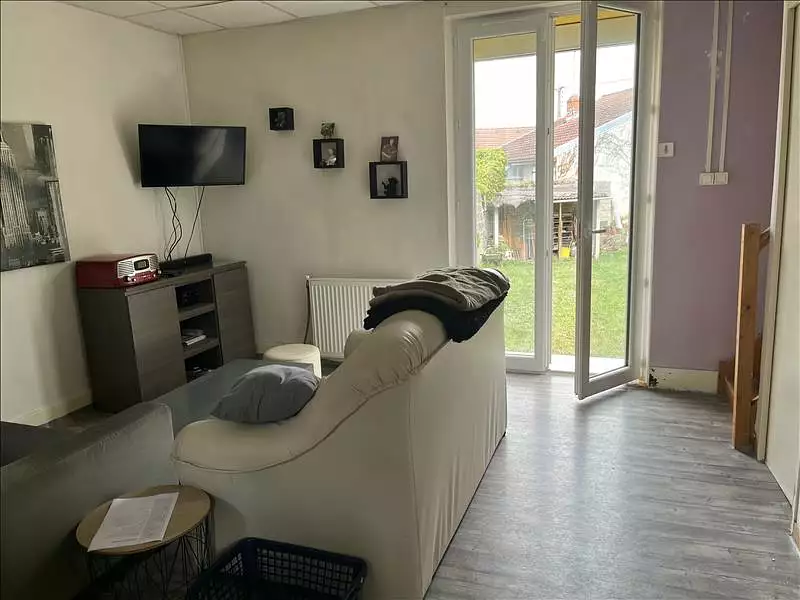 Sur la commune de Domérat, proche Montluçon, maison de ville composée de plain pied d'une entrée, une cuisine, un séjour, une salle d'eau neuve, un Wc. A l'étage deux chambres à finir de rénover. Jardin clos. Travaux réalisés: Pompe à chaleur, panneaux solaires, double vitrages, isolation par l'extérieur.